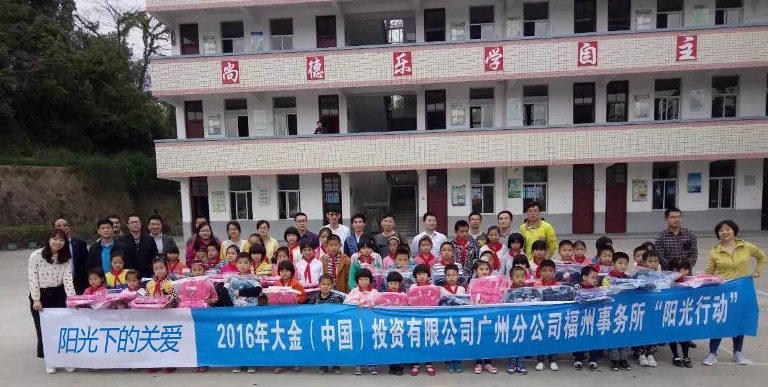 在福州事务所,自2014年起将政和县西津畲族村小学作为长期帮扶对象,其当地经济状况困难,教学力量及环境较为薄弱贫瘠,很多适龄儿童无法接受到正常的义务教育。办事处志愿者们看在眼里,急在心里,决定要为学校及孩子们提供力所能及的帮助,每逢节假日,事务所都会组织人员携物资奔赴距离300公里外的西津畲族村小学,除了提供生活物资和学习用品外,还长期资助3名特困学生。