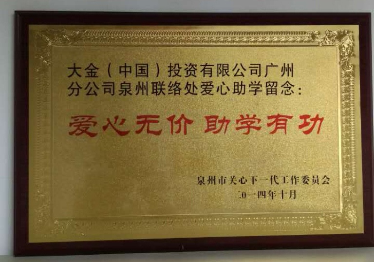 泉州市关心下一代委员会授予“爱心无价、助学有功”称号