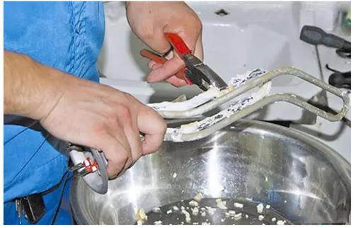 建议每隔三年请专业维修工上门彻底清理一次,将热水器内加热棒上的水垢一并去除,并更换一次镁棒(防蚀棒)