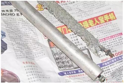 镁棒(防蚀棒)在热水器中是作为防止内胆腐蚀使用的,由于镁元素比铁元素活性强,在镁棒与普通钢板同时暴露的情况下,镁棒(防蚀棒)可以首先代替内胆钢板被腐蚀掉,减少水对加热管及内胆的腐蚀,从而达到保护内胆及加热管的目的。