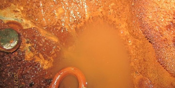 ??眼见着这砖红色的脏水足足装满了一个水桶!喏,闻起来还有点像蔬菜腐烂的味道!恶。。。