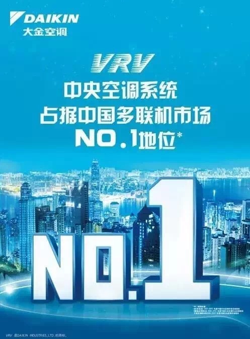 自1995年进入中国市场以来,大金已扎根中国20余年,始终坚持推广全新的空调文化。大金率先将VRV *1空调系统带入中国市场,以锐不可当的势头,开创了楼宇用多联空调系统的新时代,并连续多年占据中国多联机市场NO.1的地位*2,成为越来越多场合空调解决方案的优质之选。当家用机市场整体变频率仅为3%时,2002年大金就率先实现了家用机全变频化。如今家用机市场变频占比已接近70%; 2005年,大金在中国率先推出家用中央空调这一新的空调理念,倡导"以藏为美"的家装新风尚。2014年,大金在更"以藏为美"的前提下,推出"温度、湿度、气流、洁净度"四维一体的"New Life Style"全效家用中央空调,以多达13种形式多样、功能齐全的室内机型,为每个家庭提供个性化使用体验。