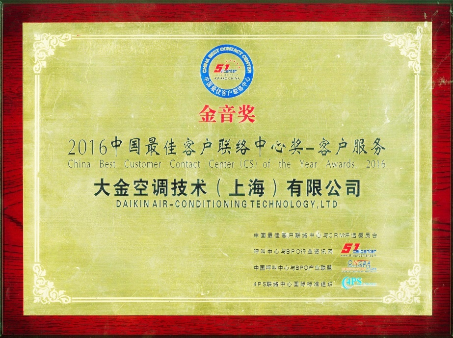 日前, 2016年度中国客户联络中心与服务外包国际峰会暨“金音奖”颁奖典礼在贵阳国际生态会议中心举行,。大金空调与海内外互联网电子商务、金融等行业的800多家企业参与角逐,最终凭借规范、标准化的客户服务管理荣登榜单,斩获空调行业“2016年度中国最佳客户联络中心——客户服务奖“奖项。