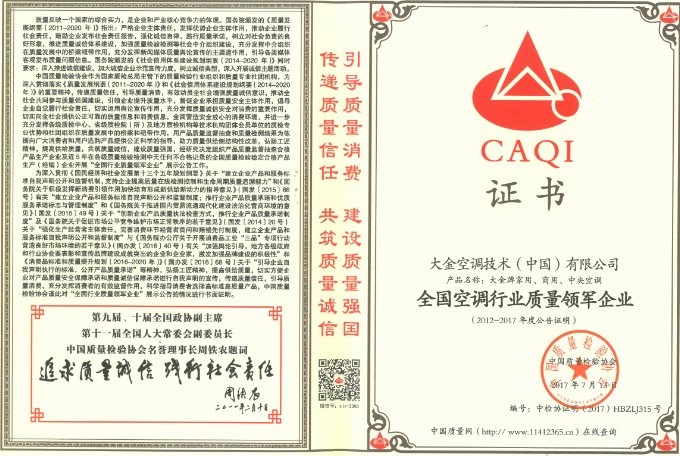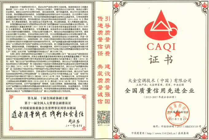 近日,在由国家质检总局、中宣部、发改委、教育部、科技部、工业和信息化部、环境保护部等47个相关部门联合行业协会共同主办的2017年全国质量月活动中金空调凭借过硬的产品品质、诚信的企业经营再次荣获全国质量信用先进企业”、“全国质量诚信标杆典型企业”、“全国空调行业质量领先品牌”三项殊荣。