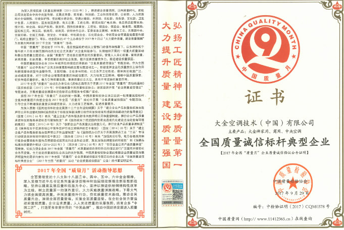 此次质量月活动,发动了全国上千家知名品牌企业携手发声倡议,旨在动员全社会增强质量意识,大力提升质量,建设质量强国。大金空调此次获得三项殊荣并被列入质量万里行信誉跟踪产品,彰显大金在产品、技术和服务质量各方面行业地位。