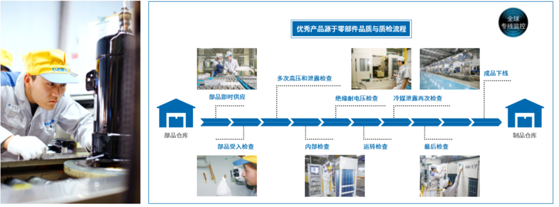 为此,大金集团世界各地90多家生产基地都严格遵守着统一的质量管理机制,实行一丝不苟的品质管理制度和高效率的生产体制。